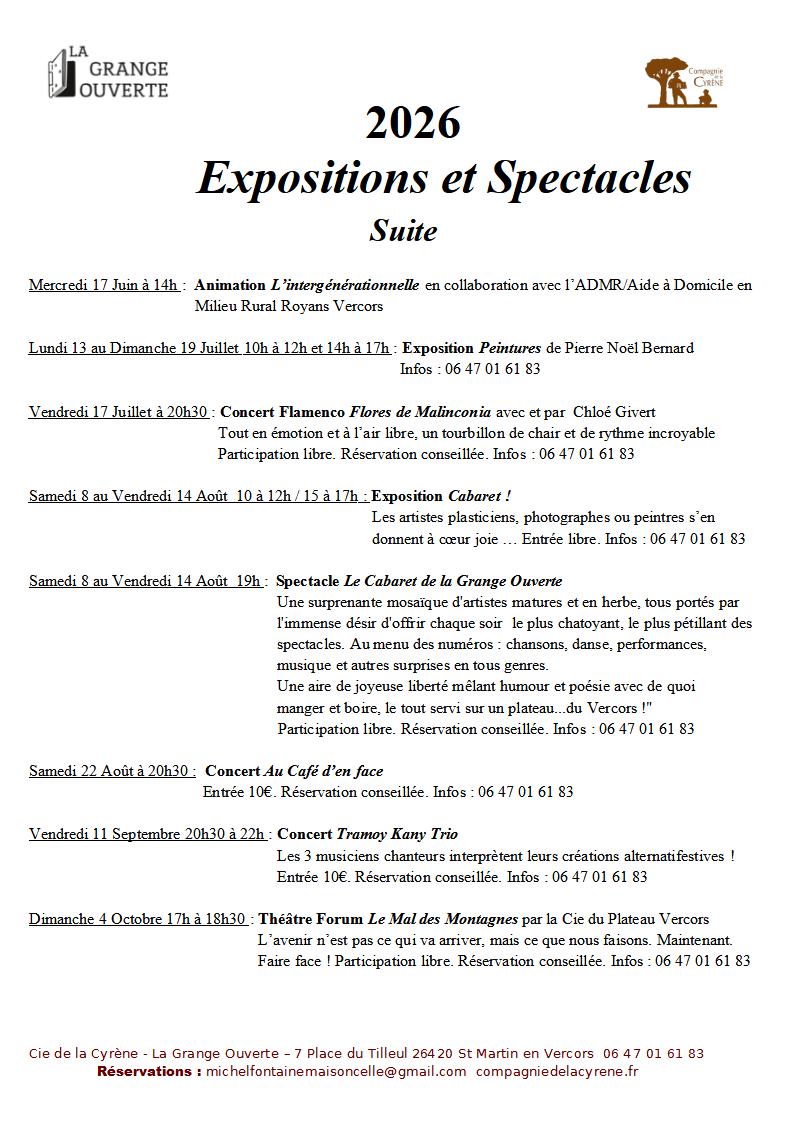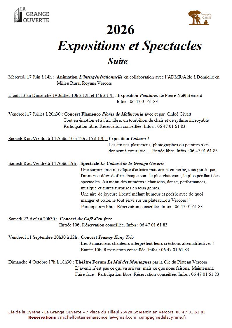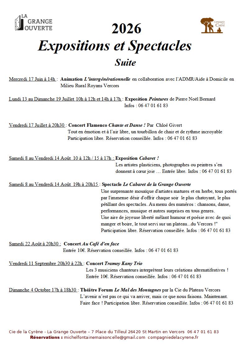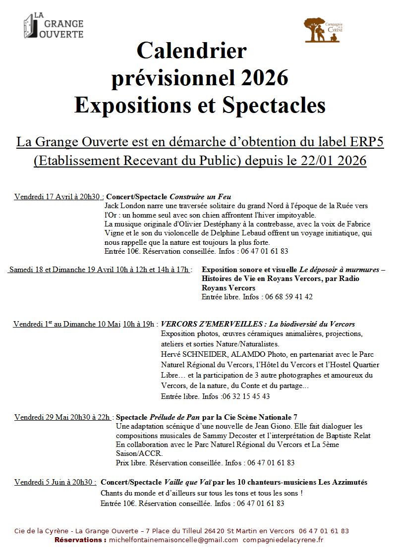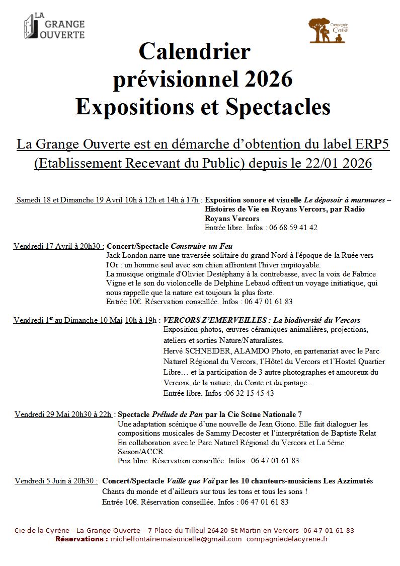 A la Grange Ouverte : Ci dessous la programmation 2026 :